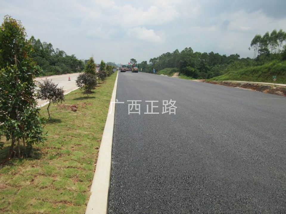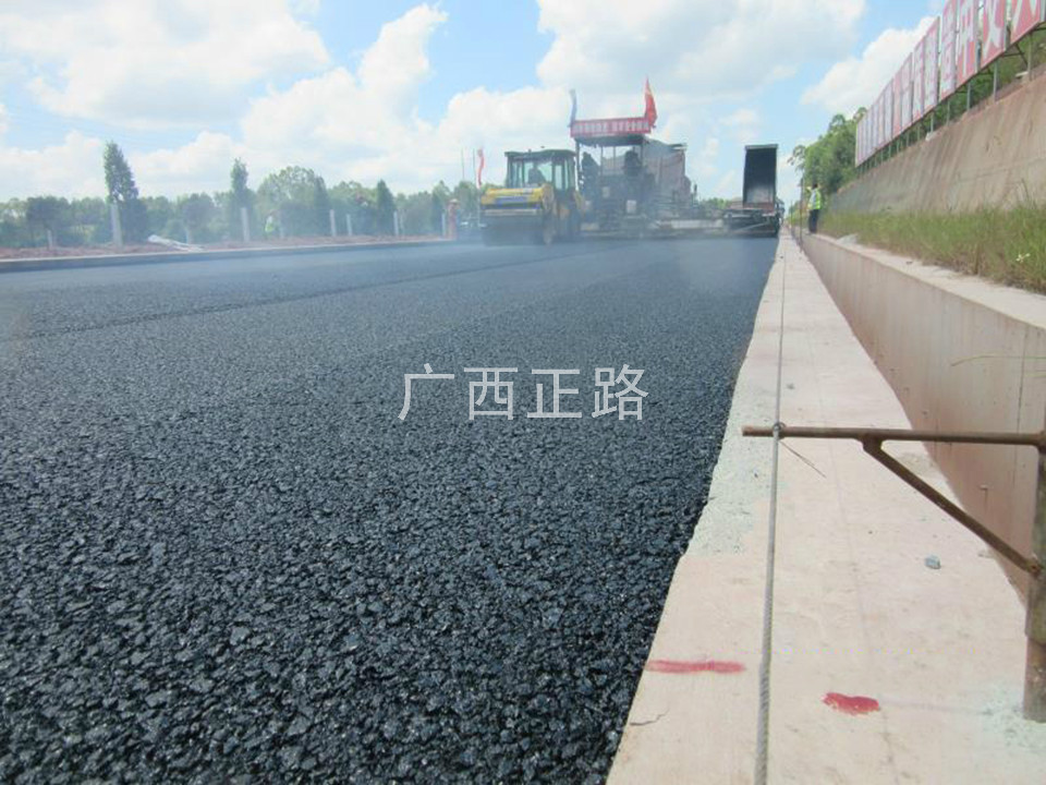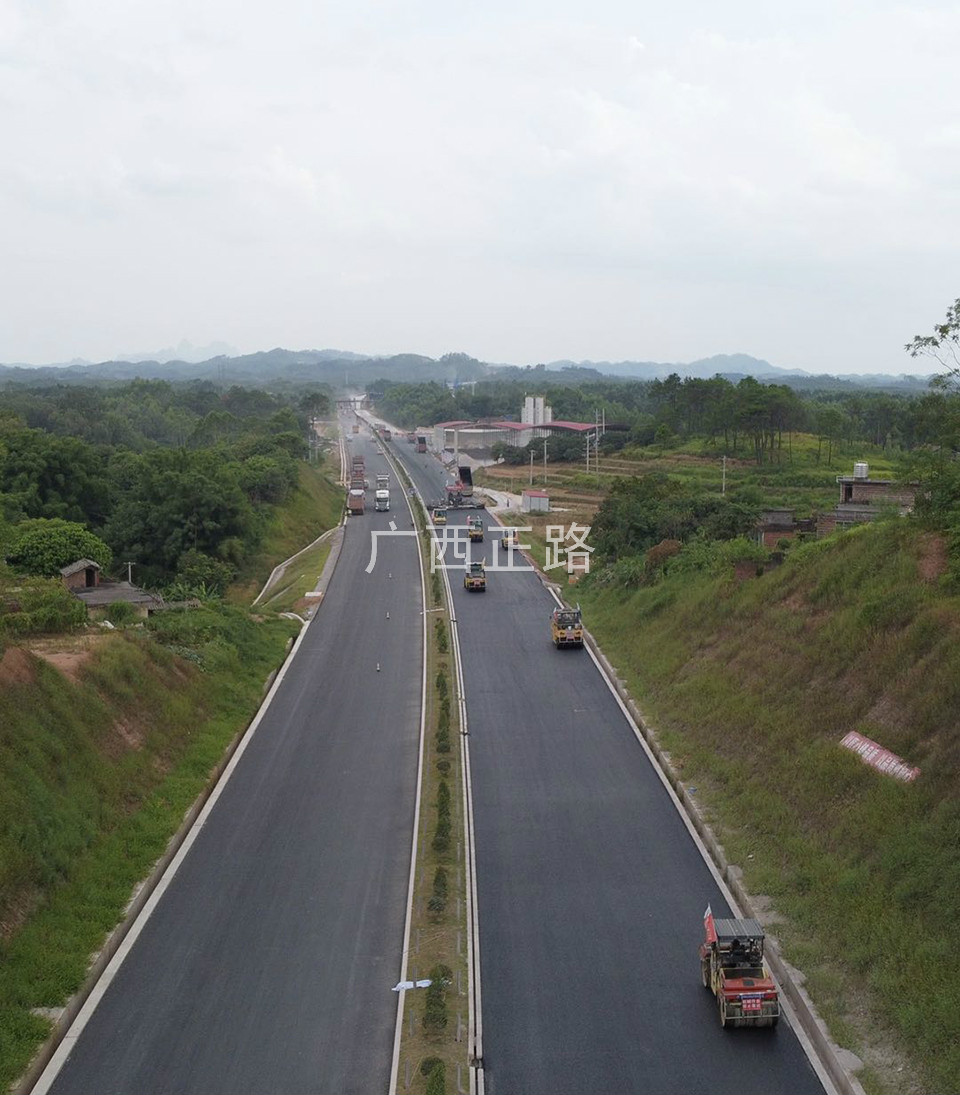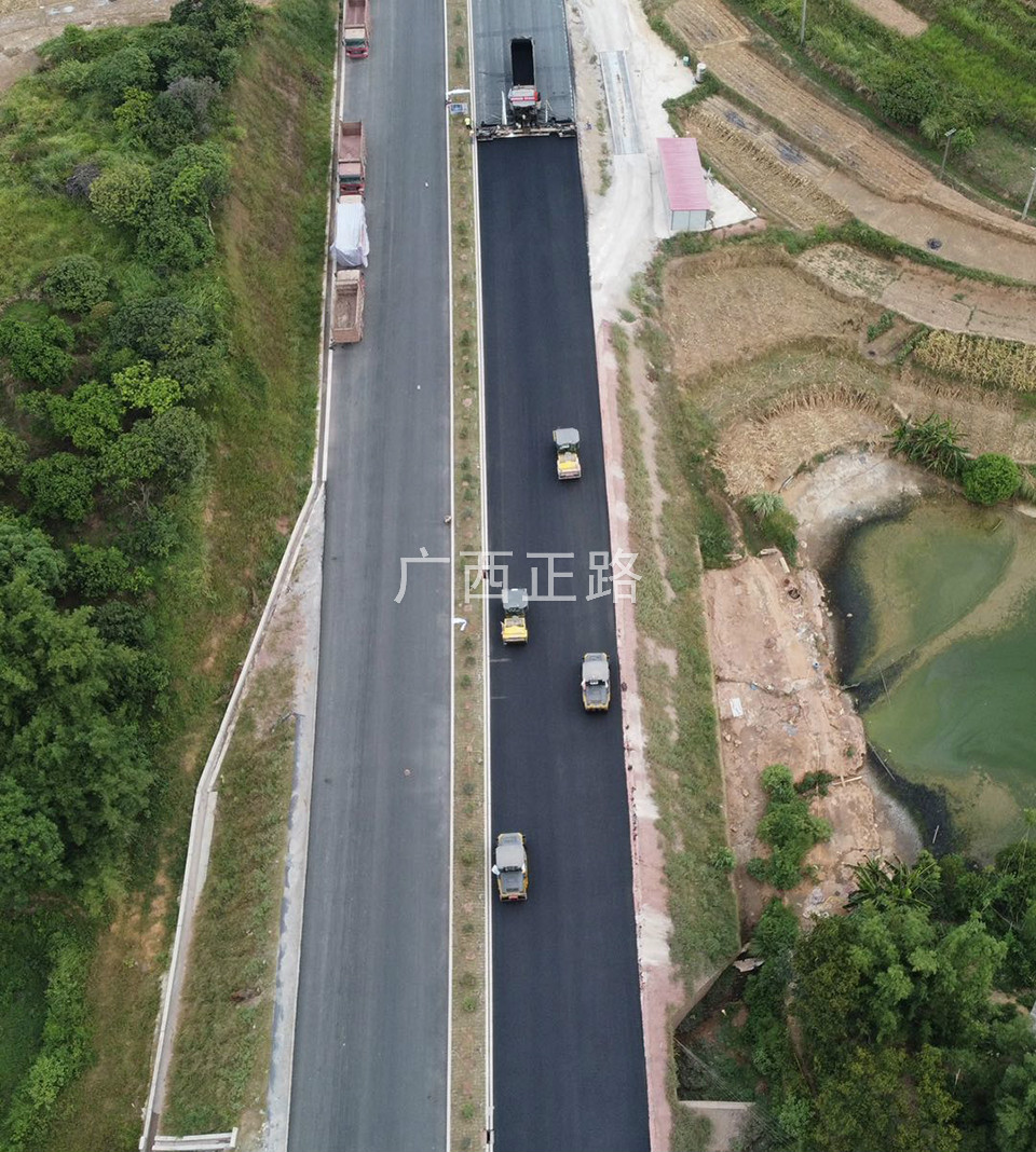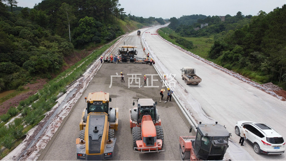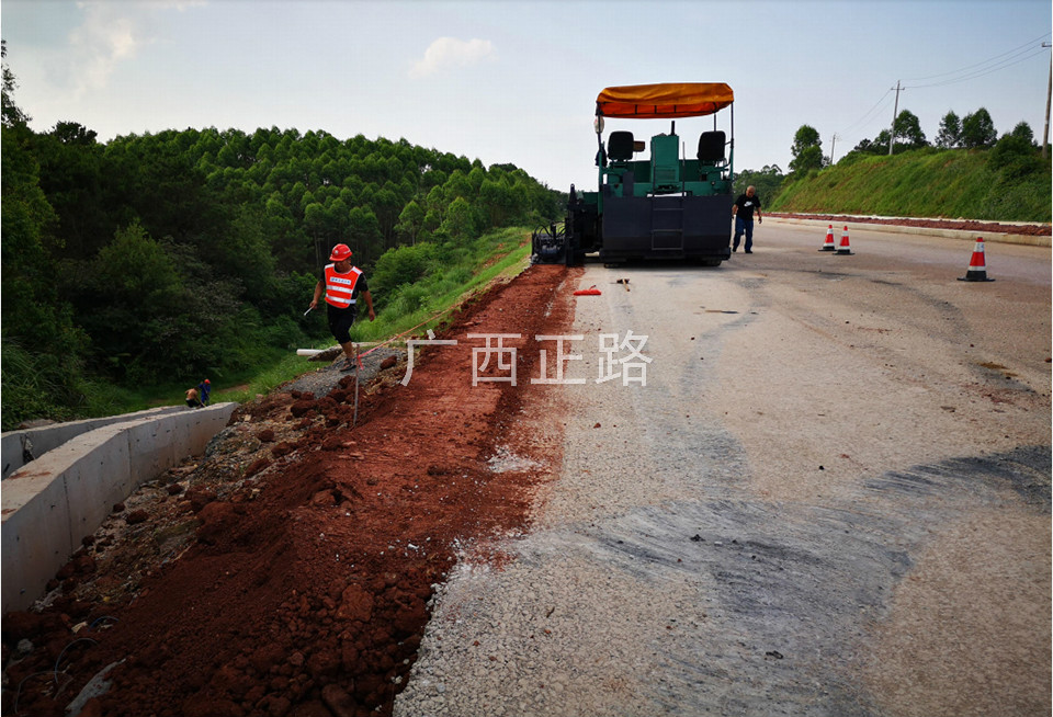 桂平東互通加寬段采用兩臺帶端伸縮裝置攤鋪機并機梯隊施工后效果