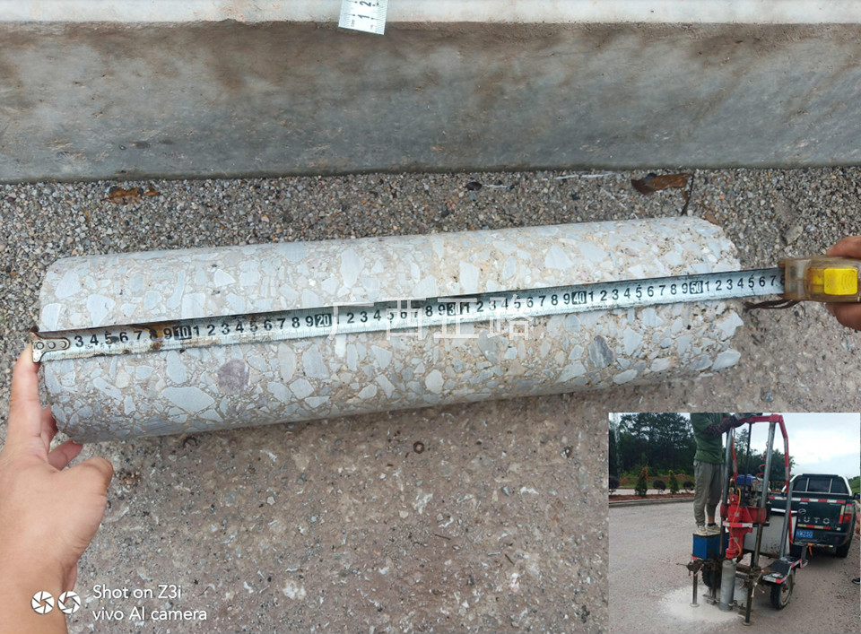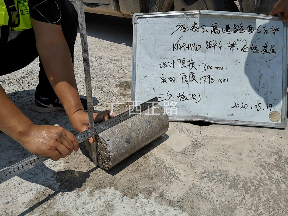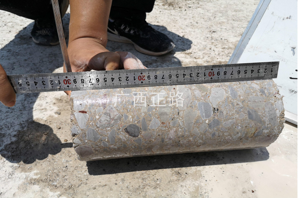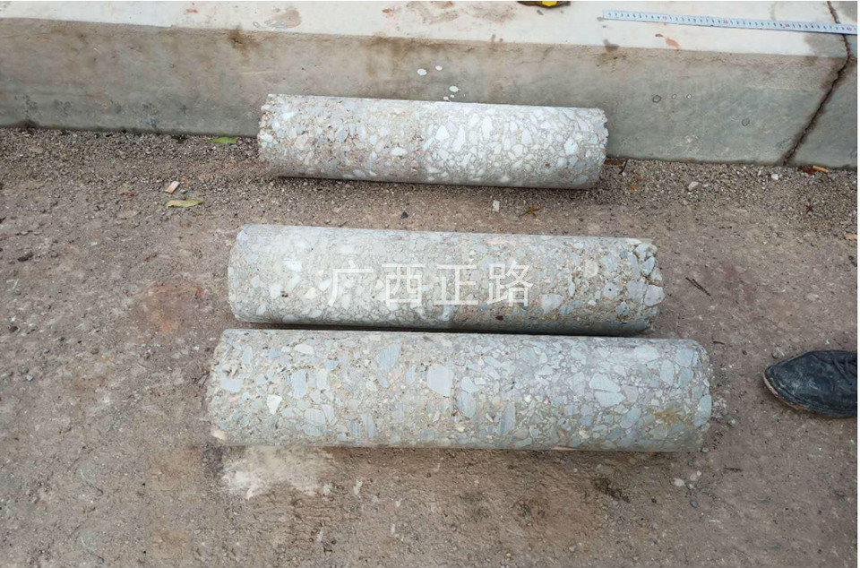 大厚度 30cm 基層采用徐工 36 噸大噸位+進口悍馬 26 噸壓路機壓實的芯樣效果