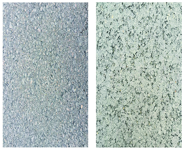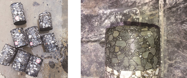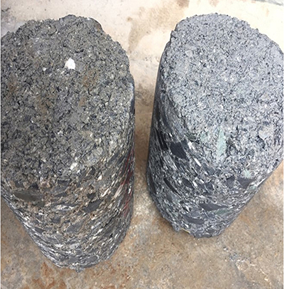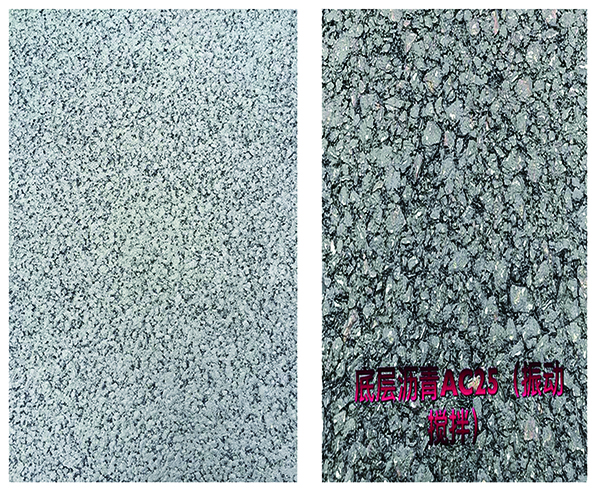 沒(méi)有任何離析,沒(méi)有油斑,均勻如織的上面層(左圖)和下面層(右圖)