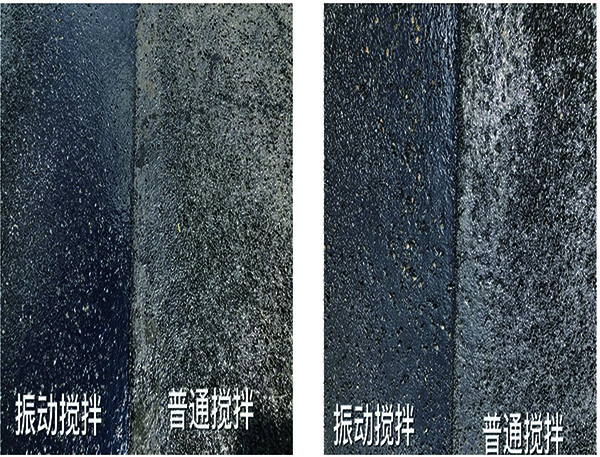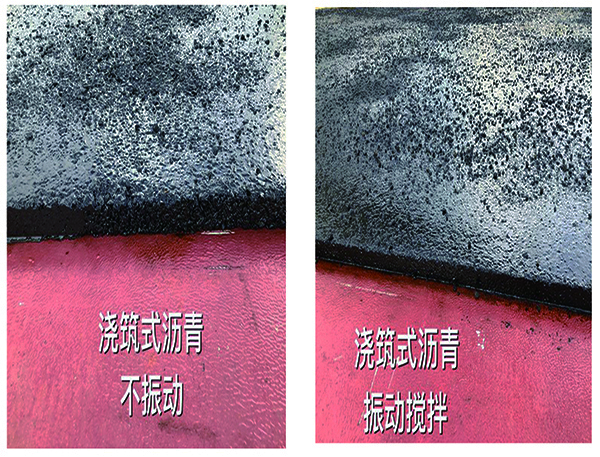 澆注式瀝青,振動(dòng)攪拌后混合料均勻性更好、流動(dòng)性更好,減少蜂窩麻面